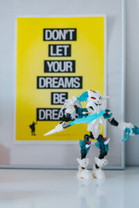 kaboompics_Toy figurine with a yellow poster